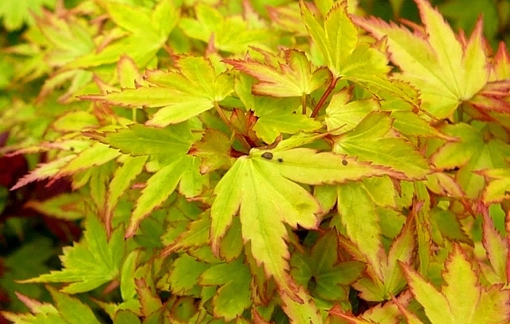 The Coonara Pygmy Japanese Maple usually starts off in spring with a pale pink to green leaf. By summer the leaves should be green. With the cooler temperatures of fall, the leaves will feature orange, yellow and a splash of red here and there.